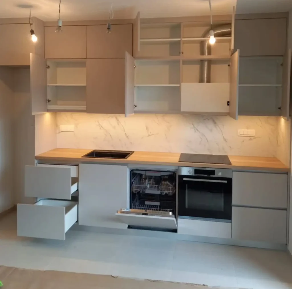 Izrađujemo namještaj po mjeri koristeći pritom moderne materijale i dekore od kojih izrađujemo kuhinje, spavaće sobe, dječje sobe, kupaonski namještaj, predsoblja, ugradbene ormare, komode, pulteve, ormare, vitrine, uredski i ostali namještaj vrhunskog dizajna i kvalitete.